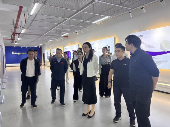 在天元智能科学研究院,宋洁书记亲自参观了机器人实验室,对企业在协作机器人、工业自动化等领域的研发进展及其应用进行了细致的调研,并与企业研发团队就机器人感知、规划与控制等前沿技术问题展开了深入的交流与探讨。在Kingcera企业展厅,宋洁书记对先进陶瓷材料在智能制造领域的创新应用进行了考察,并对企业在材料科学与智能制造交叉融合方面的积极探索给予了高度评价。
